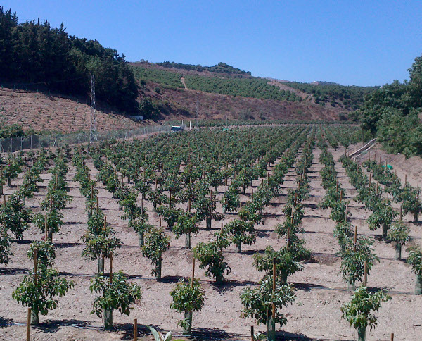 Los primeros meses después de la plantación son críticos. Es fundamental controlar el nivel de agua en el suelo. Los árboles pequeños son muy sensibles a la escasez de humedad, siendo igualmente perjudicial el exceso de agua. Se recomienda el uso de tensiómetros para manejar el riego.