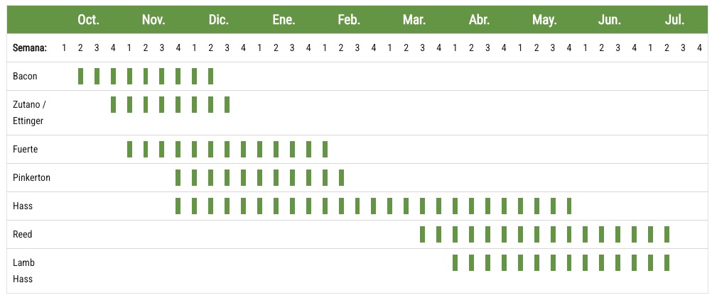 La variedad Hass, en el sur de la Península Ibérica, suele presentar fuertes floraciones en los primeros años de establecimiento en el campo. Este exceso de floración perjudica el crecimiento normal del árbol por lo que se recomienda eliminar las panículas florales solo en los árboles que presenten una floración excesiva.